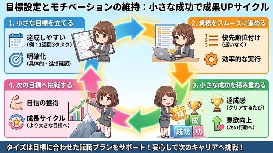 小さな成功を積み重ねると、自然とモチベーションが高まり、次の目標にも挑戦しやすくなります。